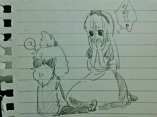 絵 もう体力の限界とか明日の朝早い用事の備えのためもうパソコン触れない(^q^)またパソコン触ったらお返事とかいろいろします!絵は前髪のうっとうしそうなアンゴラのためアリスが前髪をちょんまげみたいに結んでみたら素顔可愛かったっていう絵←
