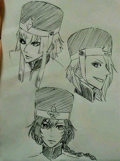 絵 トランプ兵のそれぞれのマークの中で一番えらい隊長格の人たちトランプ的に言うとJ《ジャック》ですスペード、クローバー、ダイヤにはQ《クイーン》、K《キング》は存在しませんハートのQ《クイーン》、K《キング》はもちろん女王様と王様ですハートのJ《ジャック》は…誰なんでしょうね←正直、ビジュアルしか考えてないんで質問とかなしよ!←
