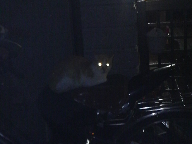 私のチャリの横のバイクの上で