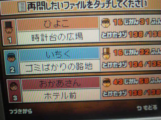 最近更新数が少ない理由 レイトンばっかやってたからです←でも、2日でクリアしたよ!←←なので、ちゃんと更新業務に戻ります(`・ω・´)完全攻略を目指しながら←あ、ちなみに名前はひよこです他の2つは借りた友達の名前ですらないのでわかりません《笑”