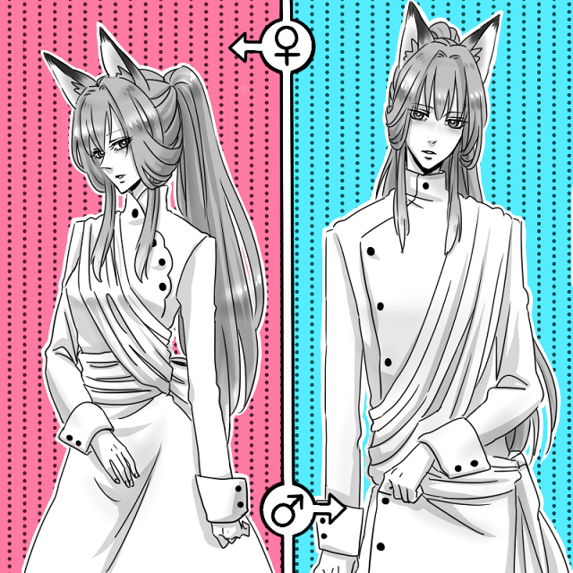 絵L:お題箱から キツネちゃん可愛くなる気がしてやってみたけどこいつも元から中性的な顔だった\(^q^)/すみません;;絵描いてたらもうこんな時間なんで寝ることにします明日も朝からバイトです死ねそうです←ゆっくり寝れて絵描ける日が欲しいなぁ(´・ω・`)今は猛烈に年賀状描く時間が欲しい…!!ってわけで、コメ返はまた明日!ラスト2匹!【性転換】めーちゃん ↑ ↓【性転換】オオカミ