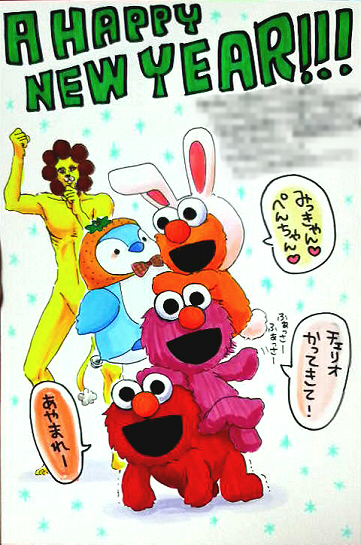 絵:お披露目年賀状!番外編 もう大体の方から報告は受けましたので今回からは私の学校の友達へ手渡しでささげた年賀状の一部をご紹介!これは実録ベルギー宛てです2010年を通してのやりとりで培ったネタが満載です《笑”注目は後ろのケツポンですね「後ろのマジいらんww」って言われました\(^q^)/