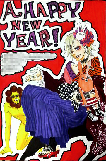 絵E:お披露目年賀状!番外編 続いての番外編年賀状ですこの友人はこの絵をさしあげた人物ですね《笑”ちなみにこの友人でもありますそして、この年賀状の絵もその少年です\(^q^)/完全にオリジナルなので一番時間がかかりましたヴィジュアル系が好きで創作アリスでも猫が好きだったみたいなんでとにかくゴチャゴチャとさせてみました年賀状の感想は「私の趣味をよくわかってらっしゃる《笑” もう天にめされてもいい\(^q^)/」でした大成功だね(^ω^)(^ω^)!